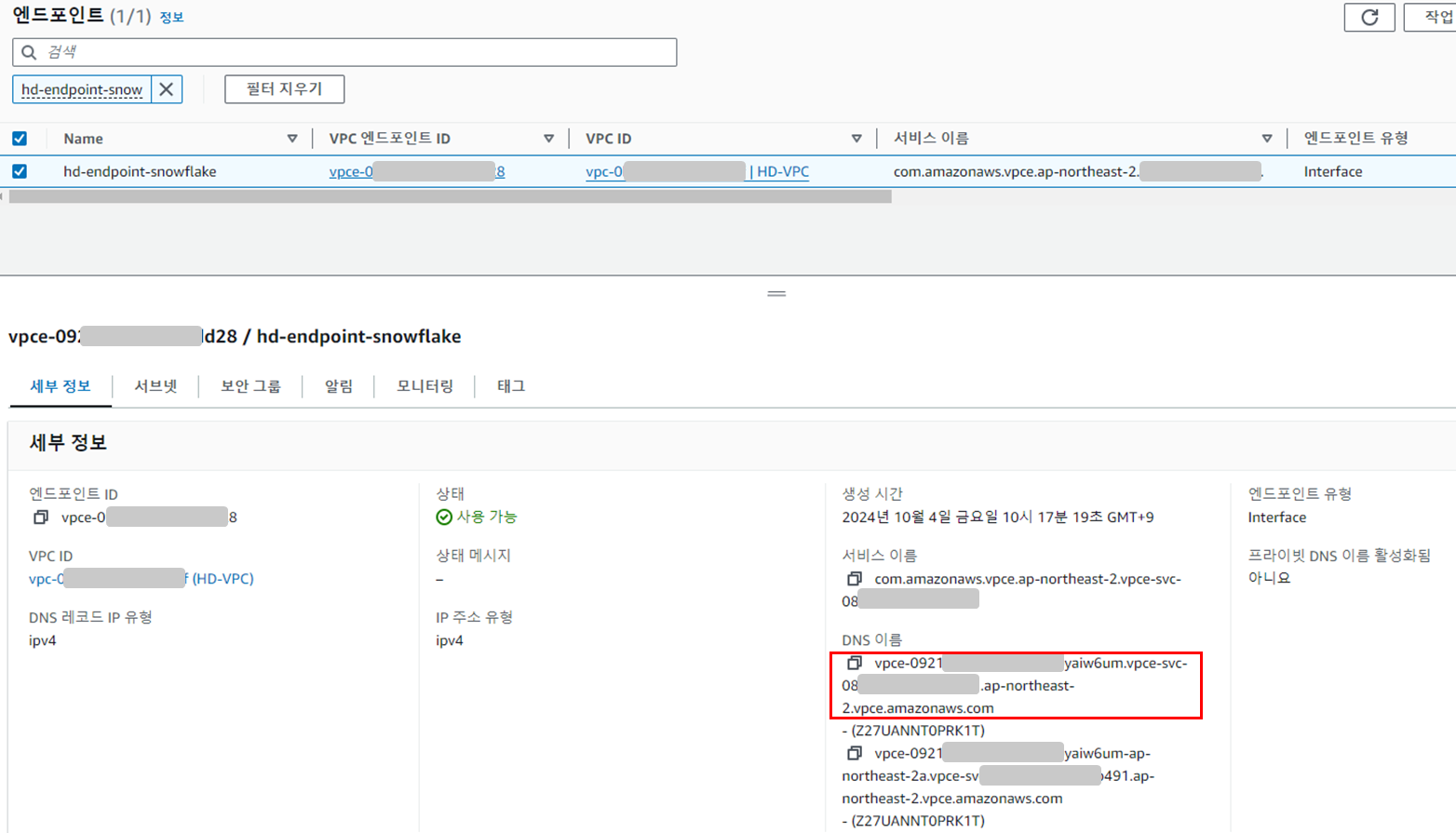 2. VPC 엔드포인트 DNS 이름 확인