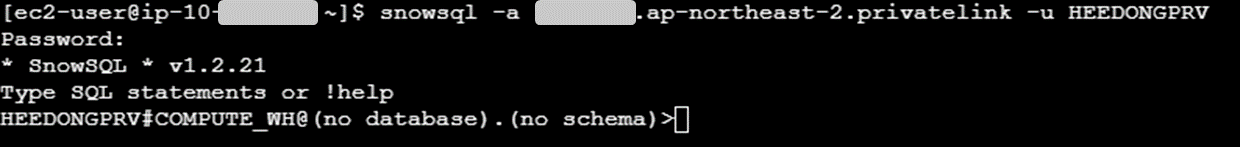 Snowflake CLI 클라이언트인 Snowsql을 설치한 후 private한 URL로 Snowflake에 접속이 가능한지 확인한다.