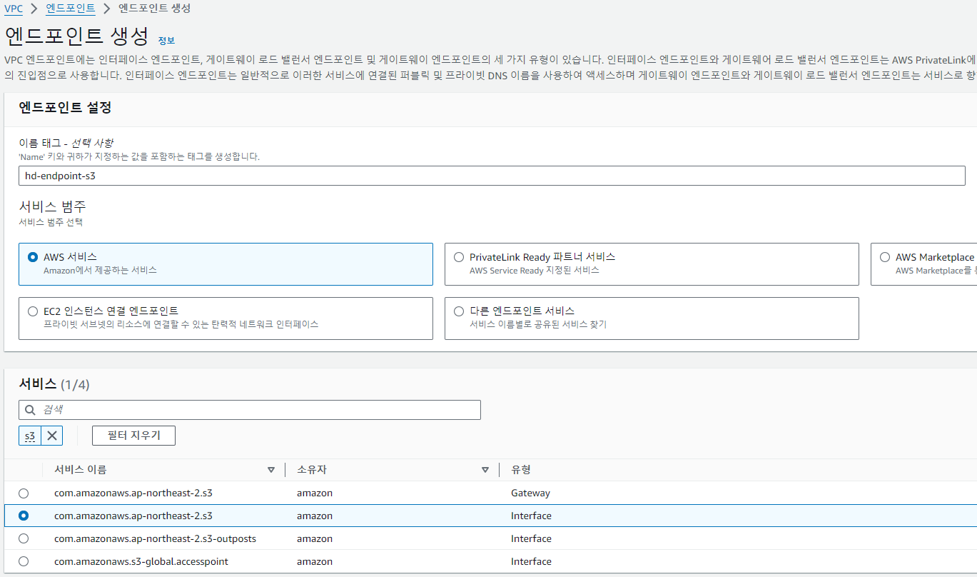 1. AWS VPC Interface 엔드포인트 생성