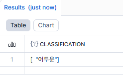 SELECT AI_CLASSIFY('아래 내용의 분위기를 분류해주세요 :' || TRANS_TXT:text::STRING