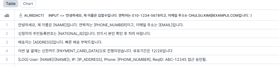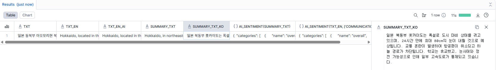 AI_TRANSLATE(TXT, 'KO','EN' ) AS TXT_EN_AI,